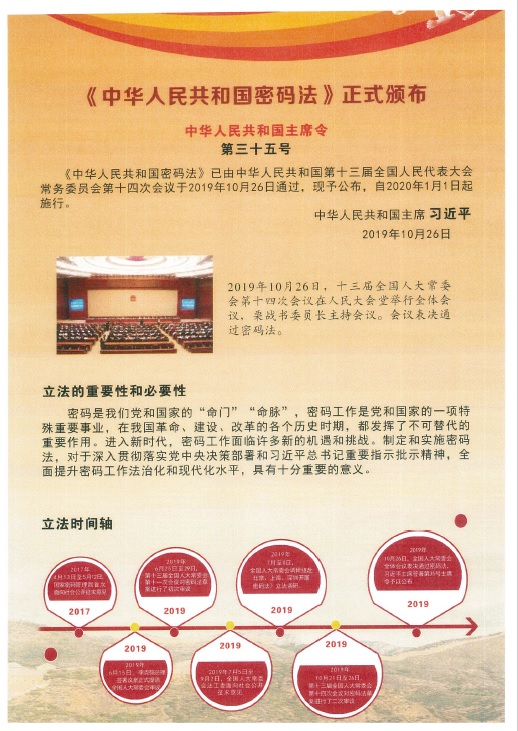 第一條 為了規范密碼應用和管理,促進密碼事業發展,保障網絡與信息安全,維護國家安全和社會公共利益,保護公民、法人和其他組織的合法權益,制定本法。