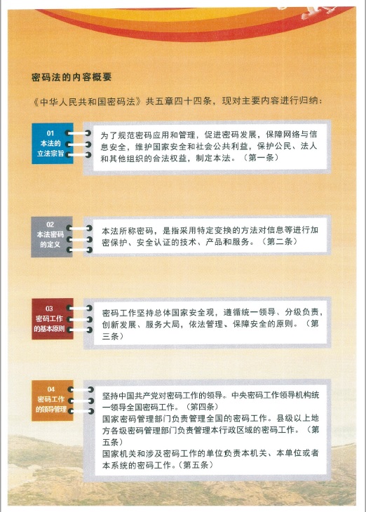第十條 國家采取多種形式加強密碼安全教育,將密碼安全教育納入國民教育體系和公務員教育培訓體系,增強公民、法人和其他組織的密碼安全意識。
