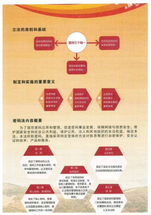 第三條 密碼工作堅持總體國家安全觀,遵循統一領導、分級負責,創新發展、服務大局,依法管理、保障安全的原則。
