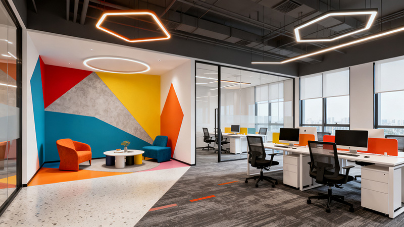 吊頂與墻面地面的基礎(chǔ)處理則與風格定位相關(guān)。例如,礦棉板吊頂(常用辦公吊頂)約120-180元/平米,跌級造型吊頂或鋁扣板吊頂會貴30%-50%;墻面刷乳膠漆約40-60元/平米,若做木飾面、硬包或藝術(shù)涂料,單價可升至150-300元/平米;地面通鋪地磚約80-120元/平米,鋪強化復(fù)合地板約100-150元/平米,實木地板或環(huán)氧地坪則需200元/平米以上。